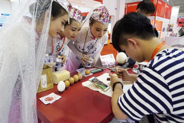 我校特教生在现场的蛋雕、工笔画等技艺展示吸引了大量的观众驻足观看。当了解到这些孩子们生活在无声的世界里时,他们感到惋惜的同时又由衷赞叹,薄薄的蛋壳上也能雕刻大千世界,以刀代笔,游刃于蛋壳之上。0.3毫米厚的蛋壳上,山水、草木、人物、动物等等活灵活现,那些只可意会不可言传的创意,通过特教生的双手得到了精彩表现。