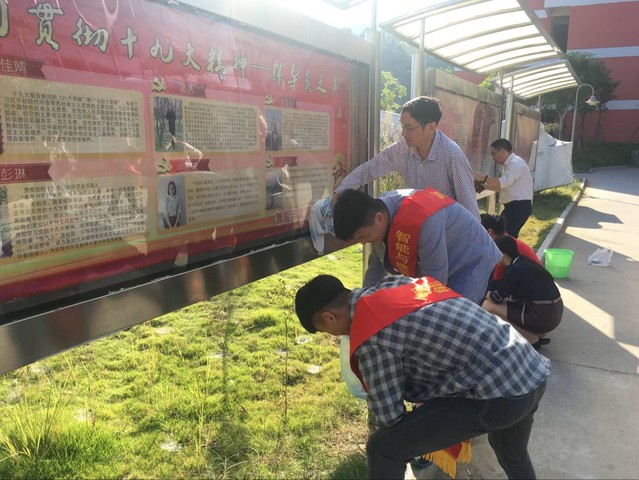 2017年11月10日下午,智能与建筑工程学院党总支开展以“欢庆十九大,志愿服务在行动”为主题的校园环境卫生整治党员志愿服务活动。