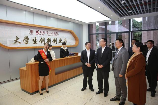 王继平司长参观了学校交通工程学院轨道交通实训室、大学生创新创业园、阿里巴巴大数据学院实训室、文化创意学院电子竞技实训室、机电工程学院智能制造实训基地等,对福州职业技术学院弘扬传承“不求最大,但求最优,但求适应社会需要”的办学思想,秉承“以服务求支持,以创新求发展”的办学理念,坚持“契合产业设专业、产教融合建专业、凝练特色强专业”,动态调整专业,适度超前,对接“福建智能制造产业集群”,主动适应地方经济社会发展和办学成果予以肯定。他要求学校认真贯彻落实全国教育大会精神,把握新时代职业教育改革发展面临的新形势,坚定走中国特色职业教育发展之路,结合当前国际职业教育发展趋势和人才培养规律,朝着更高的目标努力,为经济社会发展作出更大的贡献。