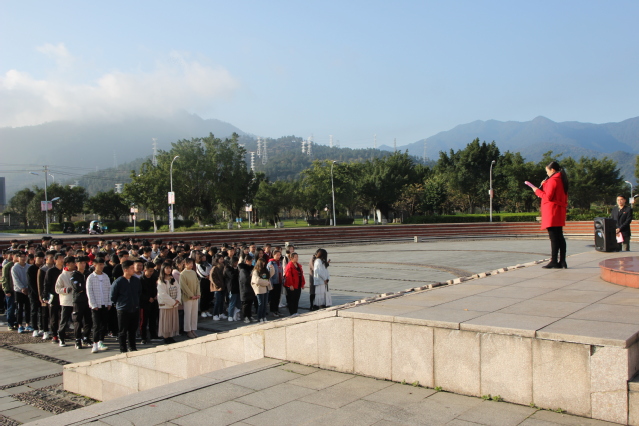 在激昂的《义勇军进行曲》中,鲜艳的五星红旗迎着朝阳载着梦想冉冉升起,全体师生肃然而立,面向国旗行注目礼。升旗仪式结束,工程造价18班学生代表黄淑芬,在国旗下演讲,她号召大家要珍惜时光,勤学苦练,努力做一名新时代有担当的大学生。活动最后,学院党总支副书记杨君勉励大家要践行习近平总书记对青年提出的“勤学、修德、明辨、笃实”八字箴言,在新学期中坚定信仰,奉献青春。
