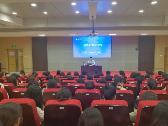报告会上,李校长以当前国际贸易问题为切入点,深入浅出地阐述了经济全球化的内涵、进程与现状、困境与挑战,回顾了我国经济全球化背景下的发展概况。鼓励同学们学好专业知识,为建设一个开放、包容、普惠、平衡、共赢的世界贡献自己的力量。