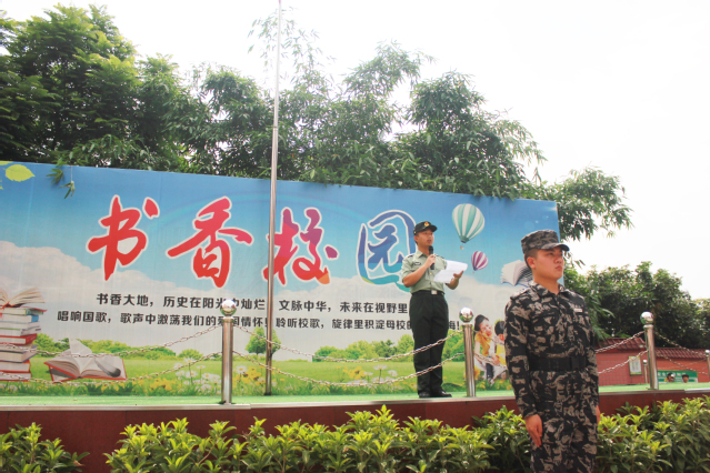 教育活动分为升国旗仪式、国旗下的讲话和场景互动三个环节。我校国旗班用整齐划一的步伐和刚劲有力的动作向南屿中心小学的小学生们展示国旗卫士的风采;学校复退返读优秀学生代表吴韩同学进行了主题为《同学,你可以这样热爱祖国》的国旗下发言,号召小学生从小事做起,培养良好习惯,为实现伟大的“中国梦”刻苦学习;在“我和我的祖国”、“我是最帅小战士”等互动模块里,小朋友们纷纷拍照留念,收获了一份与祖国和解放军的别样记忆。