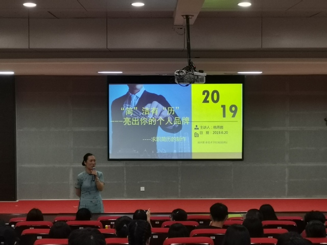 2019年6月20日,商学院主办的第二十期励园讲坛 :“简”洁有“历”,打造个人职业品牌专题讲座在我校学术报告厅举办,讲坛邀请全球职业生涯规划师韩燕霞老师主讲,各学院学生代表参加。