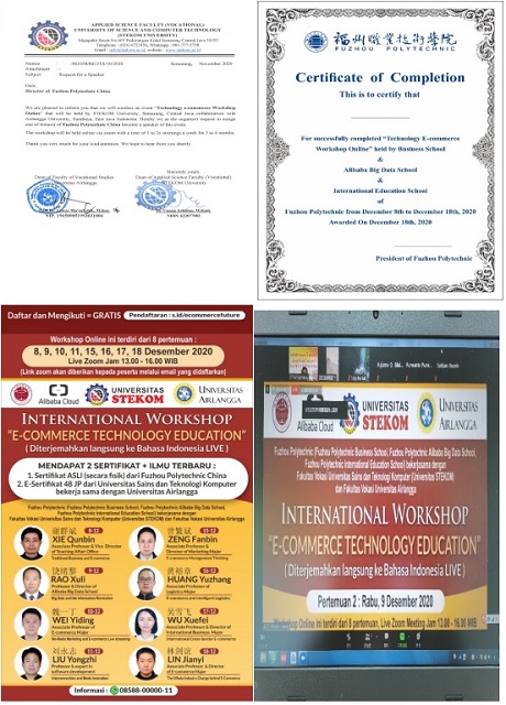 12月8日-18日,我校应印尼STEKOM大学和AIRLANGA大学的邀请,开展中印尼电子商务专业技术线上培训活动。我校国际教育学院、商学院和阿里巴巴大数据学院联合承办本次培训,选派了8名电子商务专业和大数据应用技术专业教师,联合国际教育学院英语翻译教师,通过Zoom、YouTube等线上授课平台为700名印尼师生开展了为期两周的中、英、印尼语三语同步的电子商务技术培训。