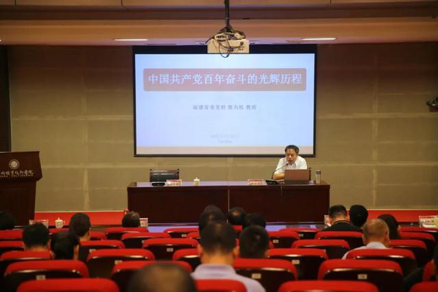 7月13日,我校邀请党史学习教育省委宣讲团成员,省委党校党建教研部教授、硕士生导师,福建省中共党史学会会长郭为桂为我校党员干部作学习贯彻习近平总书记“七一”重要讲话精神专题辅导报告。校党委书记林子波主持报告会并讲话,校长李秋斌,校领导沈锦华、刘松林、张兰英、刘春兰,各行政教辅部门负责人、各二级院系党政负责人,各二级院系党总支副书记、全体辅导员、马克思主义学院全体教师参加报告会。