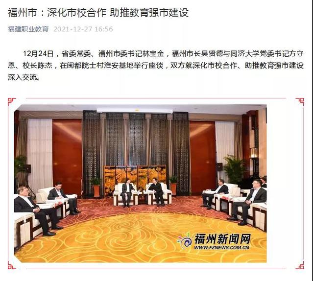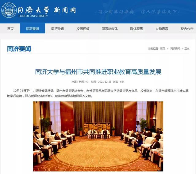 同济大学新闻网:同济大学与福州市共同推进职业教育高质量发展