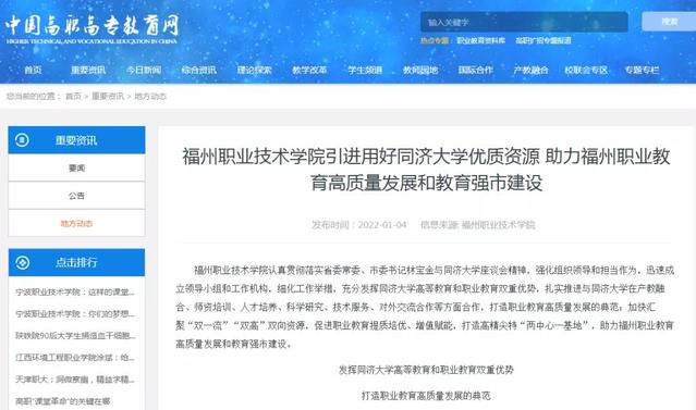 中国高职高专教育网:福州职业技术学院引进用好同济大学优质资源