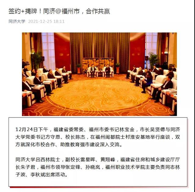 同济大学微信:签约+揭牌!同济@福州市,合作共赢