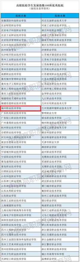 近日,由中国教育科学研究院、全国职业高等院校校长联席会议编制的《2022中国职业教育质量年度报告》由高等教育出版社出版,该报告对全国高职院校学生发展情况进行综合评价,福州职业技术学院入选全国高职院校学生发展指数100所优秀院校。