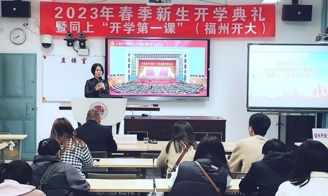4月8日,福建开放大学组织2023年春季新生开学典礼暨同上“开学第一课”活动,福州开放大学设立开学典礼分会场,通过双向视频全程参与。期间还进行2022年度优秀毕业生、2021年度奖学金颁奖、为新生佩戴校徽、讲解入学教育安排等。