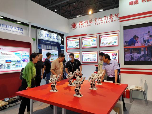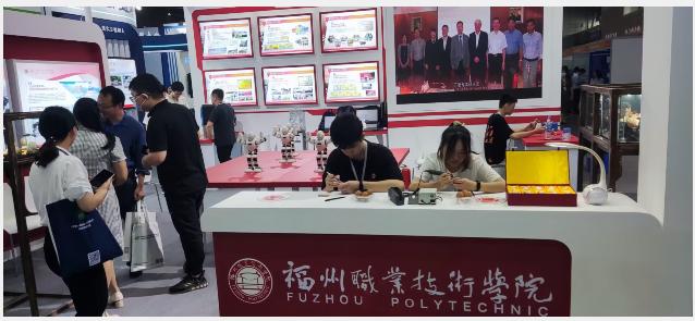 活动进行了职业教育科技创新成果与数智实训装备技术展和“双高计划”中期建设成果展。我校在展览中精心安排了静态成果展示和现场表演两大部分,以“励园红”为主题的展位在展馆中显眼夺目。展览从党的建设、人才培养、学校治理等十个板块,图文并茂、言简意赅地介绍学校自2019年以来开展“双高计划”建设取得的办学成就。机电工程系师生运用FDM打印机,现场演示师生在线材打印应用情境下的建模和编程能力;智能工程系师生运用跳舞机器人,编辑《茉莉花》《戏曲联唱》《中国功夫》等舞蹈节目,引来众多关注;特殊教育系的蛋雕作品融绘画、雕刻于一体,突出了学校在特殊教育领域的突出成就;文化创意系的寿山石雕融合哲学、国画及木雕、玉雕等多种民间工艺,展示学校传承优秀传统技艺的教育追求和精益求精的工匠精神。现场工艺演示环节更是吸引众多领导嘉宾、与会代表及现场观众的驻足观赏、交口称赞。本次展览充分展示了学校“双高计划”的建设成果,提升了学校的知名度。