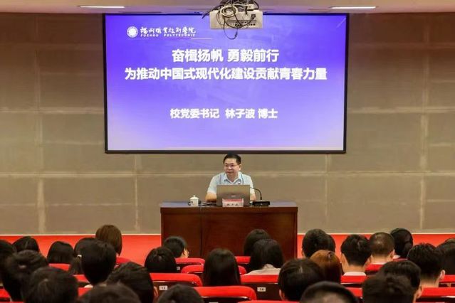 为进一步贯彻落实习近平总书记关于“大思政课”的重要指示批示精神,推动主题教育走深走实,增进青年学生对党的创新理论认同。近日,我校党委书记林子波以“奋楫扬帆 勇毅前行 为推动中国式现代化建设贡献青春力量”为题在学术报告厅讲授“思政第一课”。各院系党政负责人、全体辅导员、2023级部分新生参加。