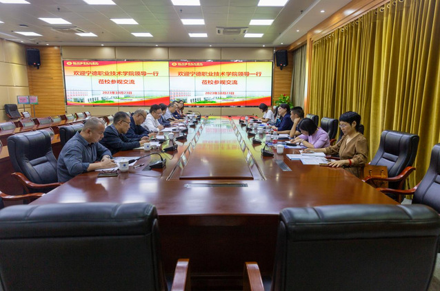 10月23日下午,宁德职业技术学院陈群校长一行来校调研交流。我校校长陈念东、副校长张兰英及相关职能部门负责人参加活动。