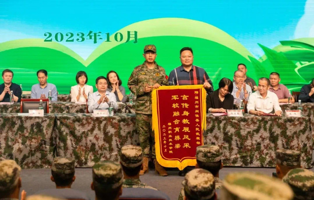 陈念东校长代表学校向本次军训承训单位闽侯县人武部赠送锦旗。