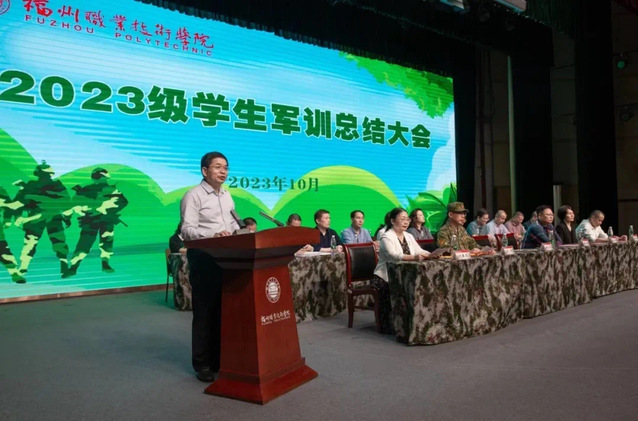 林子波书记代表学校向来校组训的闽侯县人武部和全体教官表示感谢,向完成军训任务的2023级学生表示祝贺。他寄语全体2023级学生,以习近平新时代中国特色社会主义思想为指引,坚定不移听党话、跟党走,坚定理想信念,厚植爱国情怀,勇担时代使命。用训练场上令行禁止的纪律作风,不懈追求、勇往直前的拼搏精神,去规范自己的言行举止,锤炼自己高尚的品格、顽强的意志。把在军训中养成的优良作风延续下去,积极投入到充实的大学生活中,勤奋学习,刻苦钻研,求得真学问、练就硬本领,在中国式现代化新征程上肩负起职教学子的责任与担当。