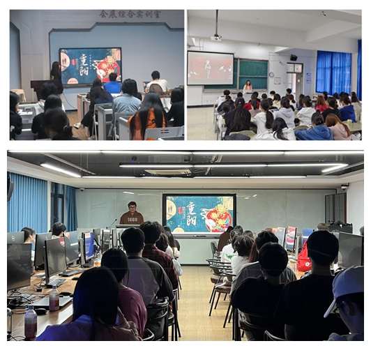 10月23日,各班级组织开展重阳节主题班会课,通过文字、图片、视频等讲解了重阳节的来历及各地的重阳习俗,让大家充分了解感受中华传统文化魅力。班会后,同学们纷纷拿起电话同家中父母长辈道一声问候,并亲手制作包含美好寓意的贺卡,向父母长辈送上最真挚的节日祝福。此外,同学们还发挥专业特长,积极制作重阳节主题海报。