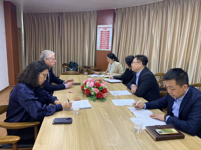 陈念东代表学校对托尼·奥·布莱恩(Tony O’Brien)一行来访表示欢迎,介绍了我校基本概况及国际交流合作情况。他指出,我校高度重视国际交流合作,两校在前期引进资源和学生“云游学”合作的基础上可以深入探索“2+1”“3+1+2”等中外合作新模式,拓展合作专业及合作领域,共同推动两校国际化发展。张兰英就推动师生互访、教师学历提升等方面的合作做了交流。