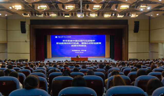 11月22日,学校党委书记、主题教育领导小组组长林子波以“牢牢把握中国式现代化进程中职业教育的时代机遇,增强办好职业教育的责任和担当”为题讲授主题教育专题党课。学校全体副科级及以上领导干部,全体教职工党员、学生党员,部分大学生入党积极分子聆听党课。