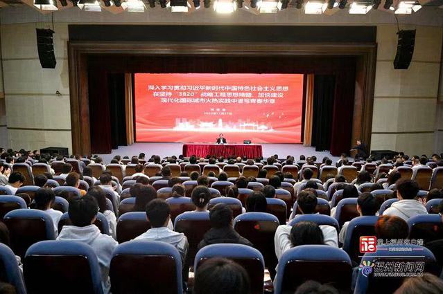11月27日,省委常委、市委书记林宝金来到福州职业技术学院,以《深入学习贯彻习近平新时代中国特色社会主义思想 在坚持“3820”战略工程思想精髓、加快建设现代化国际城市火热实践中谱写青春华章》为题,为学院师生和团员青年代表讲授党课和思政课,勉励大家不负韶华、矢志奋斗,刻苦学习,提高本领,在“好年华 聚福州”助力现代化国际城市建设中,谱写更加壮美的青春华章。省委第一巡回督导组组长林晓英,福州市和福州新区领导陈云水、蔡亚东、黄建雄出席。福州职业技术学院党委书记林子波主持。