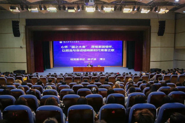 12月1日,学校党委书记、主题教育领导小组组长林子波以“心怀‘国之大者’,厚植家国情怀,以担当与奋进唱响新时代青春之歌”为题,为我校团员和青年讲授主题教育专题党课。学校党委委员、副校长刘春兰主持,学校部分团员青年、大学生入党积极分子,全体辅导员,团委负责同志聆听党课。