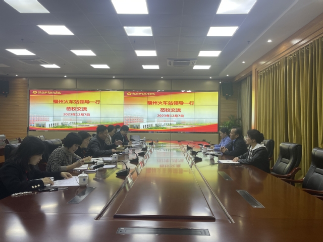 12月7日下午,福州火车站党委副书记卢伏龙一行来校交流洽谈。校长陈念东,副校长张兰英,教务处、人事处、团委、实验实训中心相关同志,交通工程系党政负责人、相关专业教师参加活动。