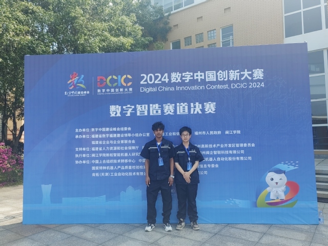 近日,2024数字中国创新大赛·数字智造赛道决赛在福州落幕,我校机电工程学院2022级智能控制技术专业学生郭剑昆和2022级机械制造及自动化专业国际生MD SALMAN SHAHRIA(国籍:孟加拉国)组队参赛荣获三等奖。