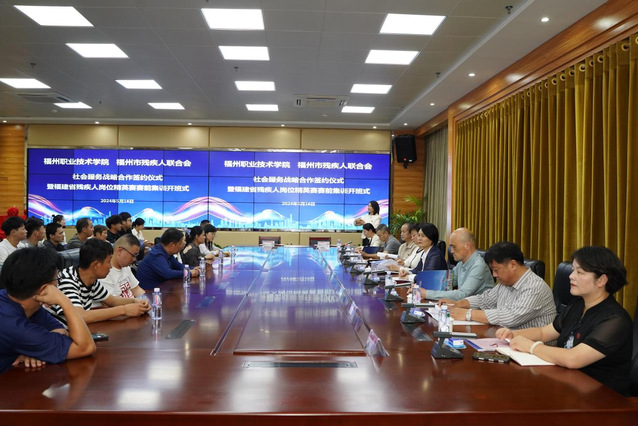 活动现场,双方签订了社会服务战略合作协议,为共同建设的“福州市残疾人职业培训基地”揭牌,并启动了福建省残疾人岗位精英赛赛前集训活动工作。