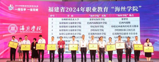 5月18日,由福建教育厅、省委宣传部、省委网信办、省人社厅等10部门联合主办、泉州职业技术大学承办的2024年职业教育活动周省级主会场活动在泉州晋江举办,活动周启动仪式上公布了福建省第一批20个“海丝学院”,我校“尼日利亚海丝学院”“泰国曼谷海丝学院”入选并现场获得授牌。