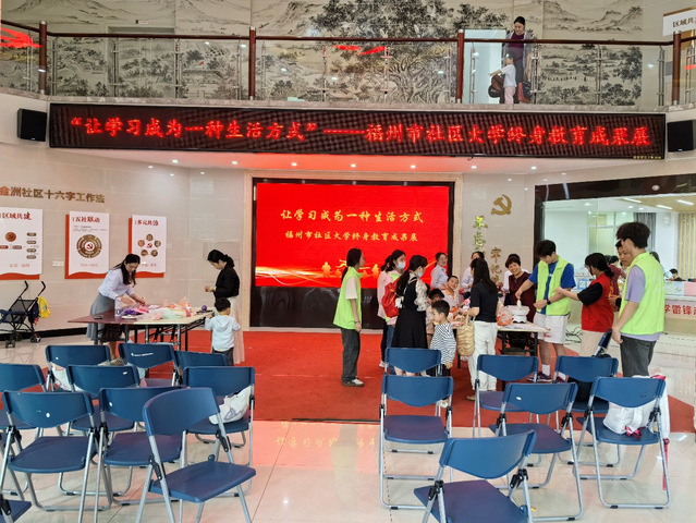 活动期间,“让学习成为一种生活方式”——福州市社区大学终身教育成果展示活动在金洲社区举行。展区展出福州市社区大学校本教材以及手工、书画、文创作品等,吸引社区居民驻足观看。社区大学手工教师带领小朋友们进行粘土创意制作、非遗糖画等体验。学校建筑工程学院展出职业技能大赛获奖建筑模型,学生志愿者讲解普及建筑知识,弘扬工匠精神,充分展示学校职业教育成果和魅力。