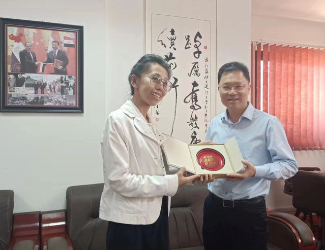 7月7日上午,王建生书记带队参观埃及苏伊士运河大学孔子学院,并与孔院的师生开展了热烈友好的交流。孔院的刘老师表达了对王建生书记一行到来的热烈欢迎,并带领参观了孔院的文化展览,王建生对孔院在埃及开展的文化传播工作表示肯定,希望未来我校能参与到对埃及的文化传播交流工作中来。