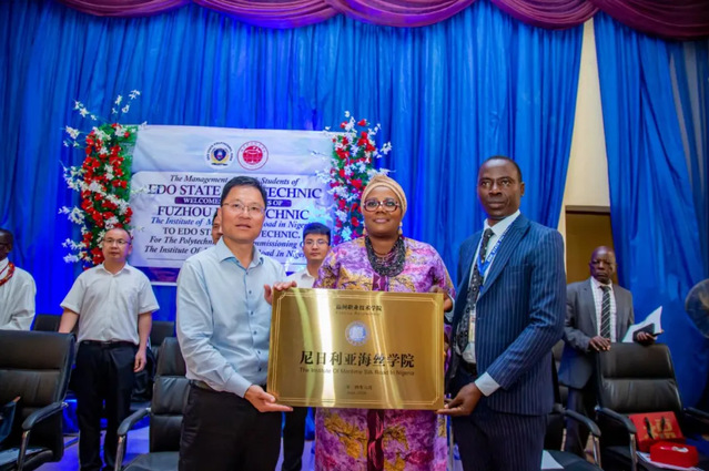 7月5日上午,王建生书记一行与埃多州教育厅厅长琼·奥萨·奥维亚维共同出席了埃多州理工大学“尼日利亚海丝学院”的挂牌仪式并在仪式后参加了两校的职业教育洽谈会。会上,琼·奥萨·奥维亚表达了对我校招收埃多州理工学院5名留学生来华留学表达了高度赞赏,希望未来这样的机会会惠及更多的学子。埃多州理工大学校长奥姆如依在会上表达了我校前期开展中文课程的感谢,并希望未来我校能在专业建设方面给予理工学院更多的支持。王建生表示推动中尼职业教育交流也是我们开展对外合作交流的美好愿景,未来两校将以“海丝学院”为平台,共同探索职业教育领域的合作新方向,推动中尼职业教育合作走向新的高度。