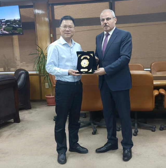 7月7日下午,王建生书记一行访问了埃及苏伊士运河大学,并与埃及苏伊士运河大学默罕默德阿卜杜拉校长进行会谈。会上王建生介绍了中国职业教育的发展状况和办学成效,他表示,希望通过与埃及高校合作共建“海丝学院”,共同探索职业教育的新模式、新路径。运河大学默罕默德阿卜杜拉校长介绍了运河大学的办学情况以及专业建设、科研、就业等方面的情况,也表达了与中国合作的期待。