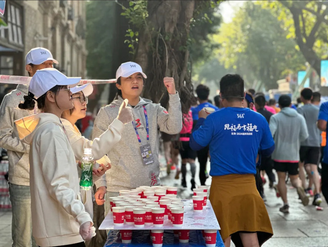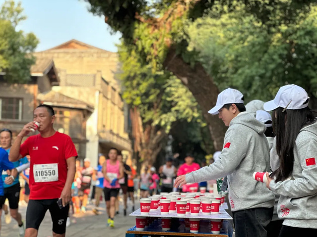 在比赛服务期间,我校志愿者始终坚守在自己的岗位上,为参赛运动员持续不断地准备饮用水,确保运动员们能够快速得到补给。他们以饱满的热情、昂扬的状态,主动细致地开展着志愿服务工作。与此同时,志愿者们也是现场有力的“啦啦队”,为选手加油鼓劲、呐喊助威。