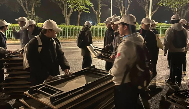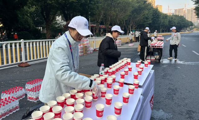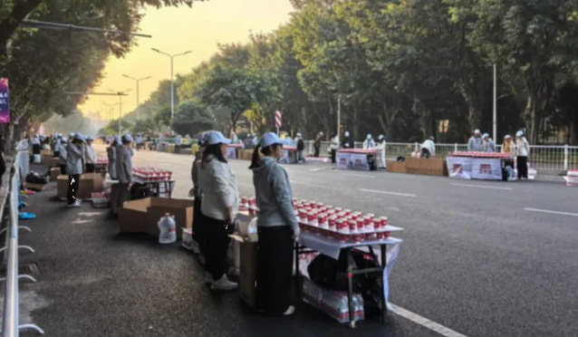 当日凌晨3时,我校青年志愿者们全部集合完毕,准时出发,顺利到达赛场。志愿者整装集结在马拉松沿线的7.5Km和10.5Km饮水站,迅速投入赛前的一系列准备工作当中,做好补给点布置、物资摆放、补给筹备等内容,为即将拉开帷幕的比赛筑牢根基,为参赛选手撑起支持与保障的“大伞”。