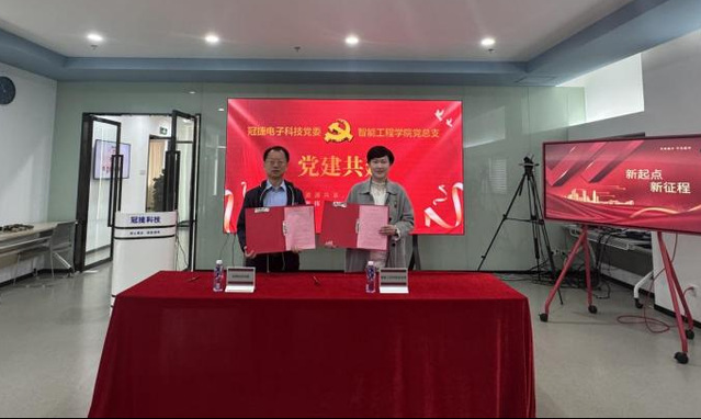 活动中,智能工程学院党总支与冠捷电子科技党委签署了党建共建协议,并举行“冠捷闽台融合电子信息产业学院”授牌仪式。双方围绕党建引领推动“冠捷闽台融合电子信息产业学院”的员工培训、学生实践、毕业生就创业以及台湾青少年研学开展进一步深入交流研讨。