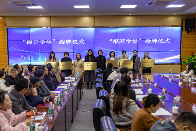 会上还举行了“福开学堂”授牌仪式,张兰英副校长、刘娟委员、周洪珍主任向鼓楼区大凰山社区、台江区福瑞社区、仓山区建岭社区与金洲社区、晋安区环南社区、高新区安里社区负责人授予“福开学堂”牌匾。