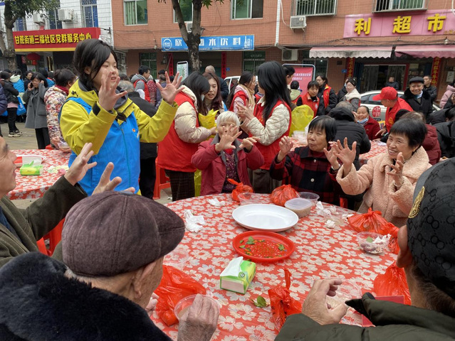 餐饮管理专业的学生志愿者们架起炉灶,将精选的糯米、红枣、桂圆等食材倒入锅中,细心把控火候熬煮成香甜软糯的拗九粥,并亲手端送至每位老人手中。一碗碗热粥承载着“孝老爱亲”的深情,让老人们感受到社会大家庭的温暖。