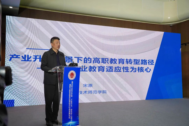 宋原教授作题为《产业升级背景下的高职教育转型路径——以职业教育适应性为核心》的主旨报告。宋教授从“职业教育适应性的内涵与挑战”“产业升级对高职教育的核心需求”“高职教育转型的实践路径”“未来发展的建议”四个方面,对高职教育转型进行了深入分析与经验分享。宋教授兼具理论深度与实践价值的论述,为学校的发展提供了宝贵借鉴和重要启示。