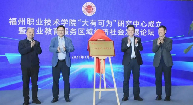 在全场热烈的掌声中,王建生书记郑重宣布福州职业技术学院“大有可为”研究中心正式成立,并与孙芳仲教授、陶海华调研员、陈念东校长共同为研究中心揭牌,标志着学校在深化产教融合、服务区域经济发展、推动职业教育高质量发展方面迈出了战略性的坚实步伐。