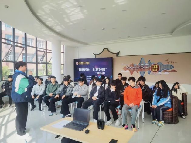 助眠音乐分享汇在扬帆社区温馨开场。从轻柔的古典钢琴曲到空灵的自然音效合成曲,每一首都帮助同学们放松身心。现场,同学们沉浸在音乐的海洋中,纷纷表示,在繁忙的学习生活中,这样的音乐如同一场心灵按摩,为自己注入了宁静的力量。