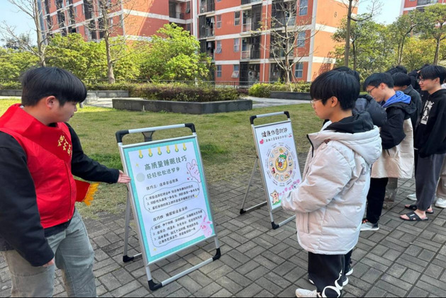 为加强睡眠知识科普宣传效果,筑梦社区精心制作可移动宣传展板,详细介绍了睡眠的重要性、常见的睡眠问题以及改善睡眠的方法。从睡眠周期的科学解读,到睡前避免使用电子设备等实用小贴士,吸引了众多过往同学驻足观看。