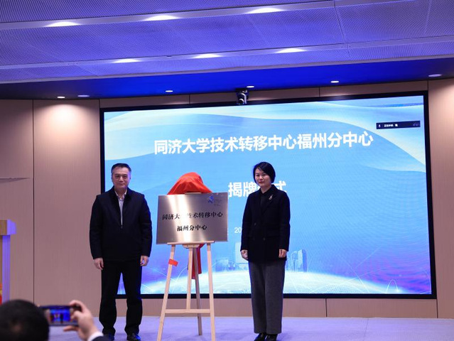 活动中,市科技局仁义文局长与学校张兰英副校长分别致辞,一致表示,希望通过此次活动,推动同济大学与福州职业技术学院的科技成果在福州市落地生根,助力地方经济发展。随后,两位共同为同济大学技术转移中心福州分中心揭牌。