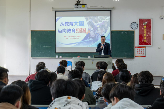 4月2日,校党委书记王建生在至善楼511教室以“从教育大国迈向教育强国”为主题,分别为2023级智能产品开发1班、2班和2023级飞机机电设备维修1班、2023级城市轨道交通运营管理1班学生讲授“形势与政策”课。