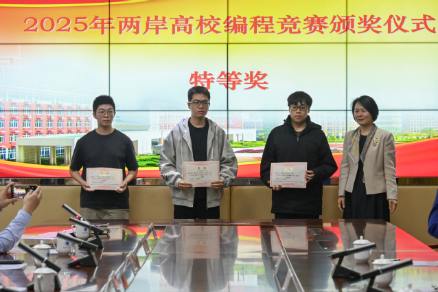4月29日,我校举办2025年两岸高校编程竞赛颁奖仪式。台湾铭传大学资讯学院院长李开晖一行27人,福建理工大学代表队,我校副校长张兰英,党政办公室、教务处、国际教育中心、信息工程学院等部门负责人及相关人员分别参加活动。