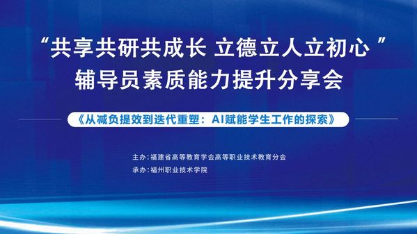5月8日,由福建省高等教育学会高等职业技术教育分会主办,福州职业技术学院承办的“共享共研共成长 立德立人立初心”辅导员素质能力提升分享会在我校成功举办。本次分享会以“AI赋能学生工作”为核心主题,采用“线下+线上”联动模式,吸引了我校以及福州地区十余所高职院校近300名思政干部和辅导员现场参与,同时通过线上直播,向全省兄弟院校同步开放,实现更广泛的共享交流。
