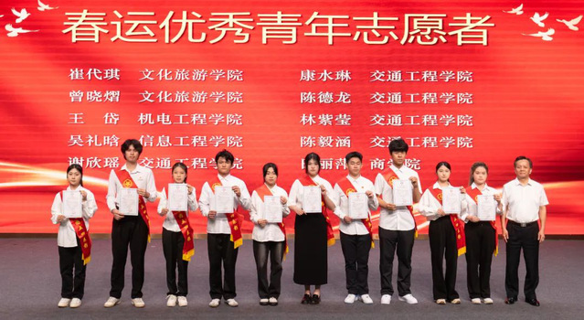 刘春兰副书记宣读《关于表彰2024年度福州职业技术学院“红旗团(总)支部”“优秀共青团干部”及“优秀共青团员”的决定》。张兰英副校长宣读学校2024年“励园志愿之星”评选结果。福州火车站团委副书记赖海燕宣布2025年铁路春运优秀志愿者表彰名单。