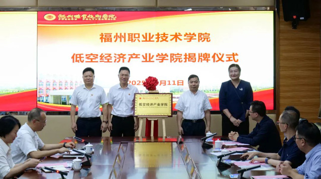 在全场热烈的掌声中,王建生书记、陈念东校长、李贵勇书记、郭晓华副主任共同为低空经济产业学院揭牌,标志着福州职业技术学院在低空经济人才培养领域迈出了坚实的步伐。