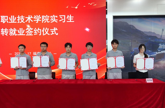 活动中,参会嘉宾与学生代表实地参观了校企共建的研学基地,深入了解产教融合实践成果。现场还举行了福州职业技术学院实习生转就业签约仪式,6名优秀学子实现“毕业即就业”的无缝对接,生动展现了校企合作的显著成效。