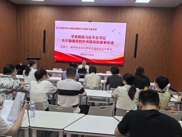 各基层党组织结合理论学习中心组学习、“三会一课”、教职工理论学习等,以集中学习、研讨交流等方式,深入学习习近平总书记关于职业教育的重要指示批示精神,学习研读新修订的《党政机关厉行节约反对浪费条例》,学习领悟《八项规定改变中国》《锲而不舍落实中央八项规定精神,以优良党风引领社风民风》等重要文章。通过学习,教育引导党员干部学以致用、知行合一,强化纪律意识,加强自我约束,为学校高质量发展提供思想保障。