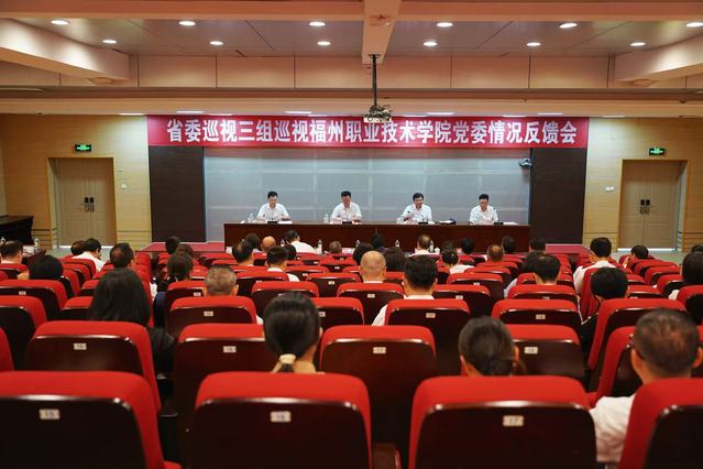 8月12日,省委巡视三组向福州职业技术学院党委反馈巡视情况。反馈会议传达学习了省委书记周祖翼在听取十一届省委第六轮巡视工作情况汇报时的讲话精神,通报了巡视发现的主要问题,并对深入抓好巡视整改工作提出要求。福州职业技术学院党委书记王建生就落实好巡视整改工作作了表态。
